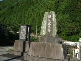 見返り橋に続く林道の手前にあった、林道開通碑です。